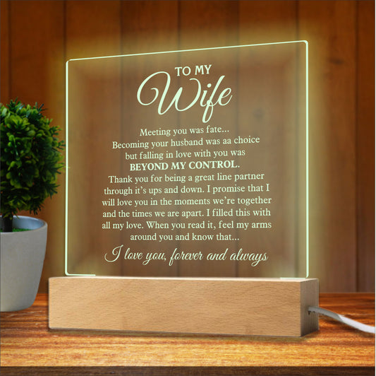 Gift for Wife, Premium Acrylic Keepsake with Built-in LED Lights - Reflection of the Love