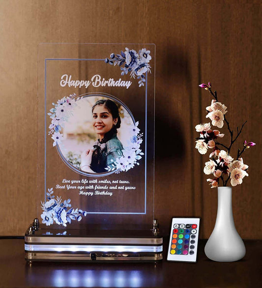 Remote control Floral LED lamp plaque with photo | Personalized Photo and message plaque