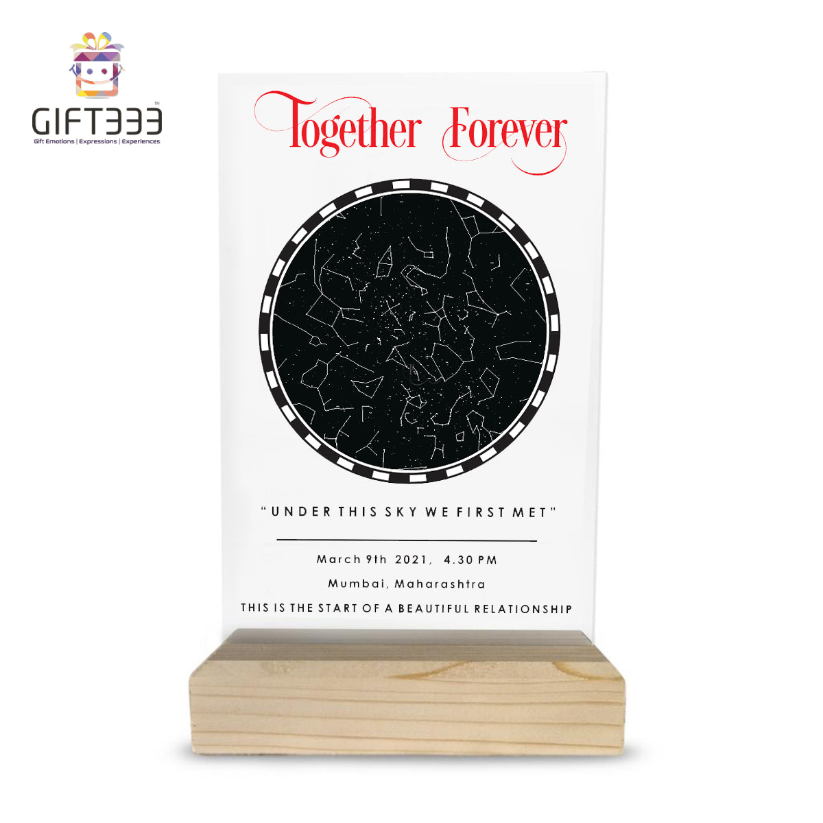 Sky Star Map Plaque Transparent with wooden stand | Personalized sky map plaque